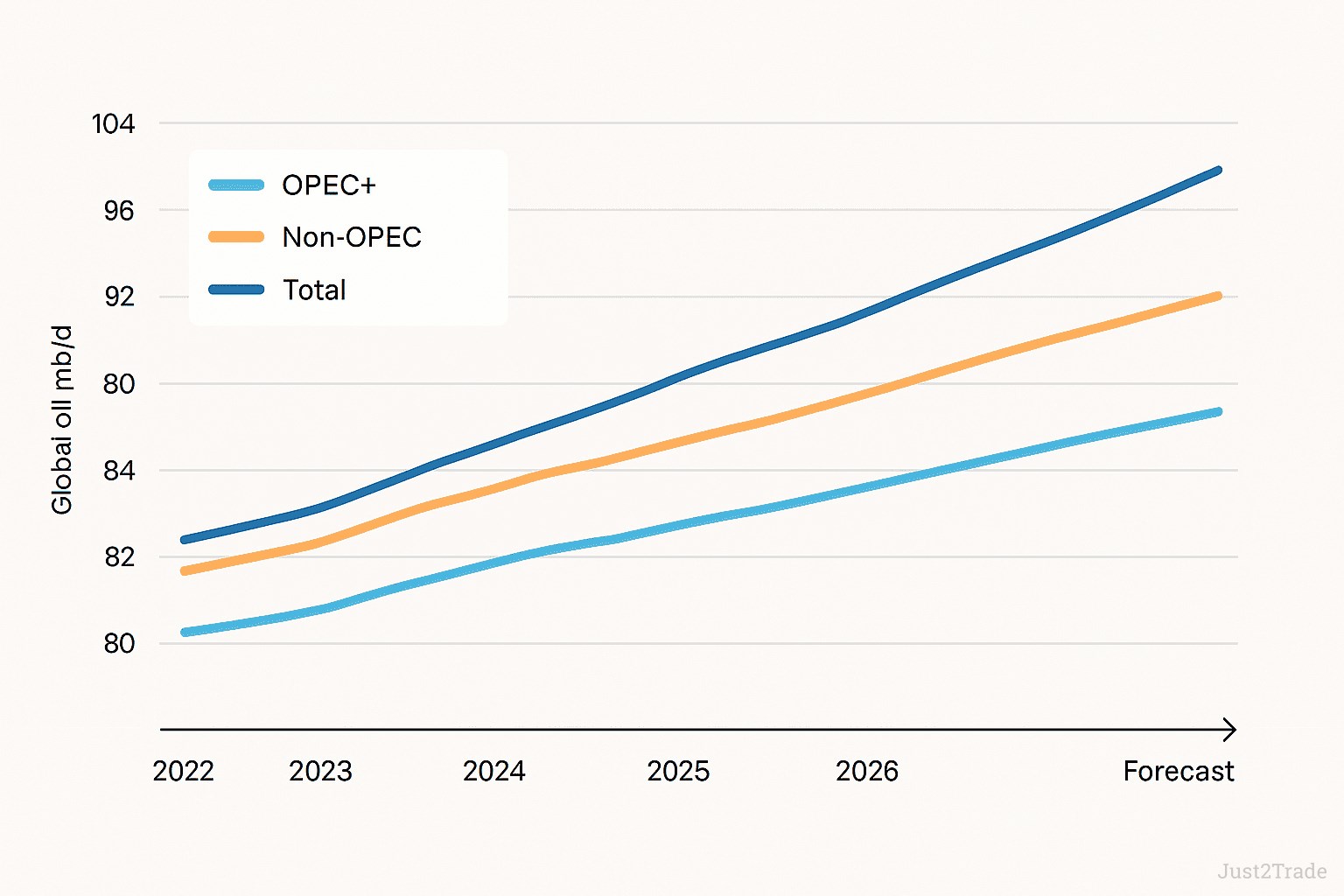 OPEC+ unwinding cuts, weak demand growth (800 kbd) |