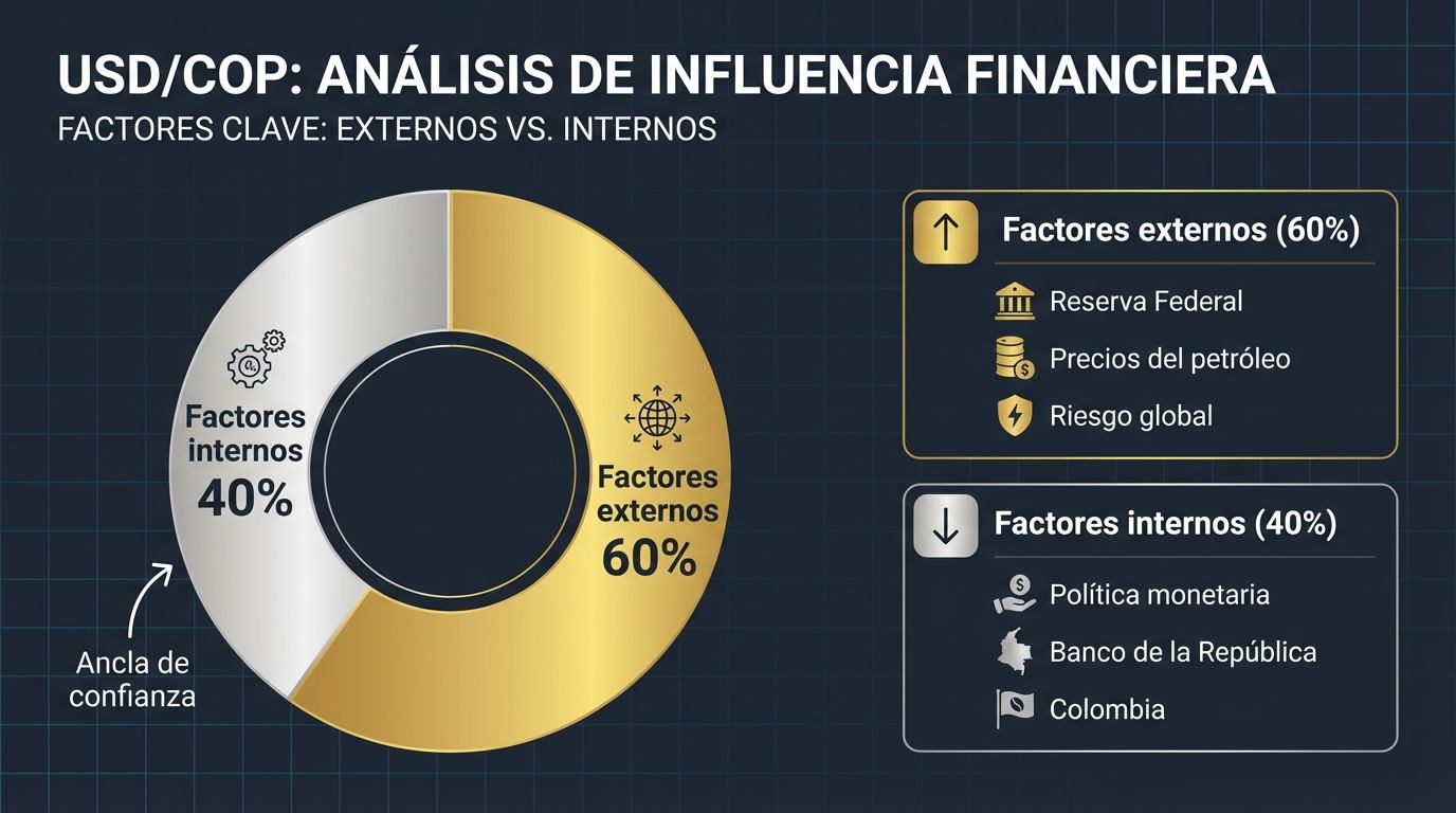 A nivel interno, la política monetaria y las decisiones del Banco de la República son clave. Externamente, influyen la Reserva Federal, el precio del petróleo y la percepción de riesgo global. La interacción de estos factores explica la evolución del dólar en Colombia.