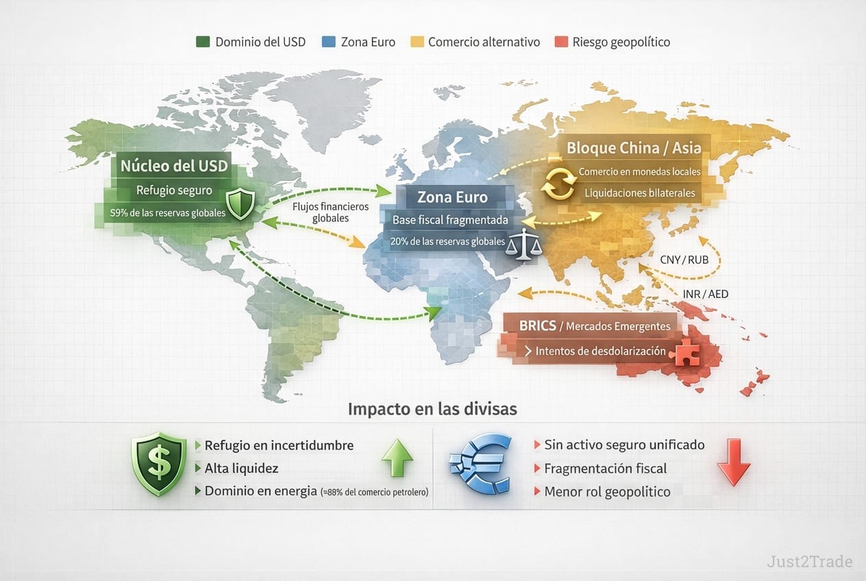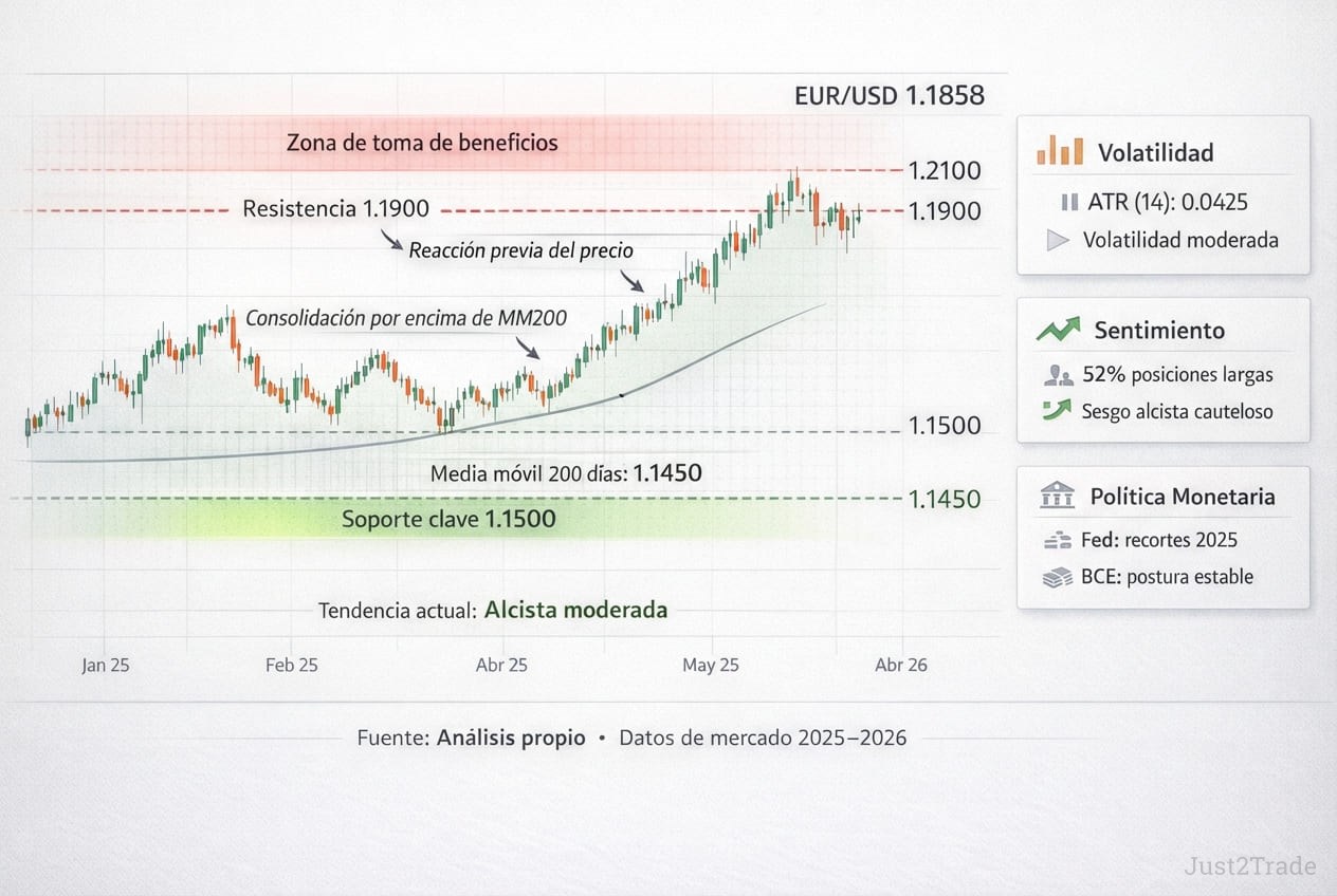 - EUR/USD proyectado en 1.18-1.26 durante 2026, tendencia alcista por convergencia Fed-BCE