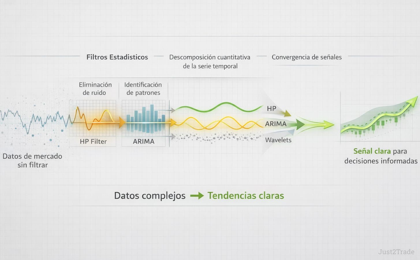 Casos específicos donde estas técnicas anticiparon cambios incluyen identificación temprana de reversión bajista en julio 2023, cuando filtros HP revelaron agotamiento de componente cíclico alcista tres semanas antes de ruptura técnica visible en gráficos convencionales.