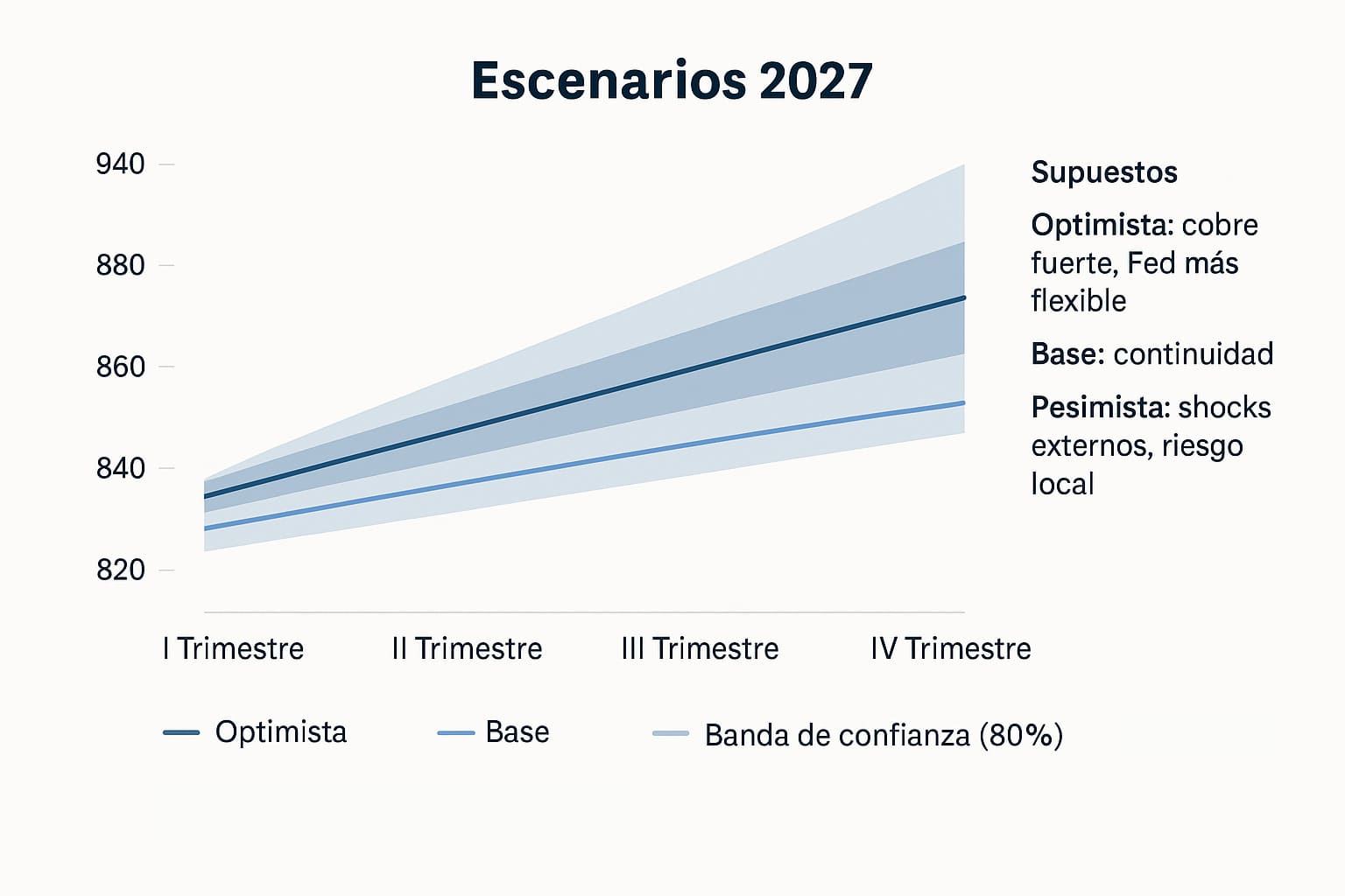 - Proyecciones corto plazo 2027: Promedio oficial 939 CLP con tres escenarios según evolución del cobre y política electoral