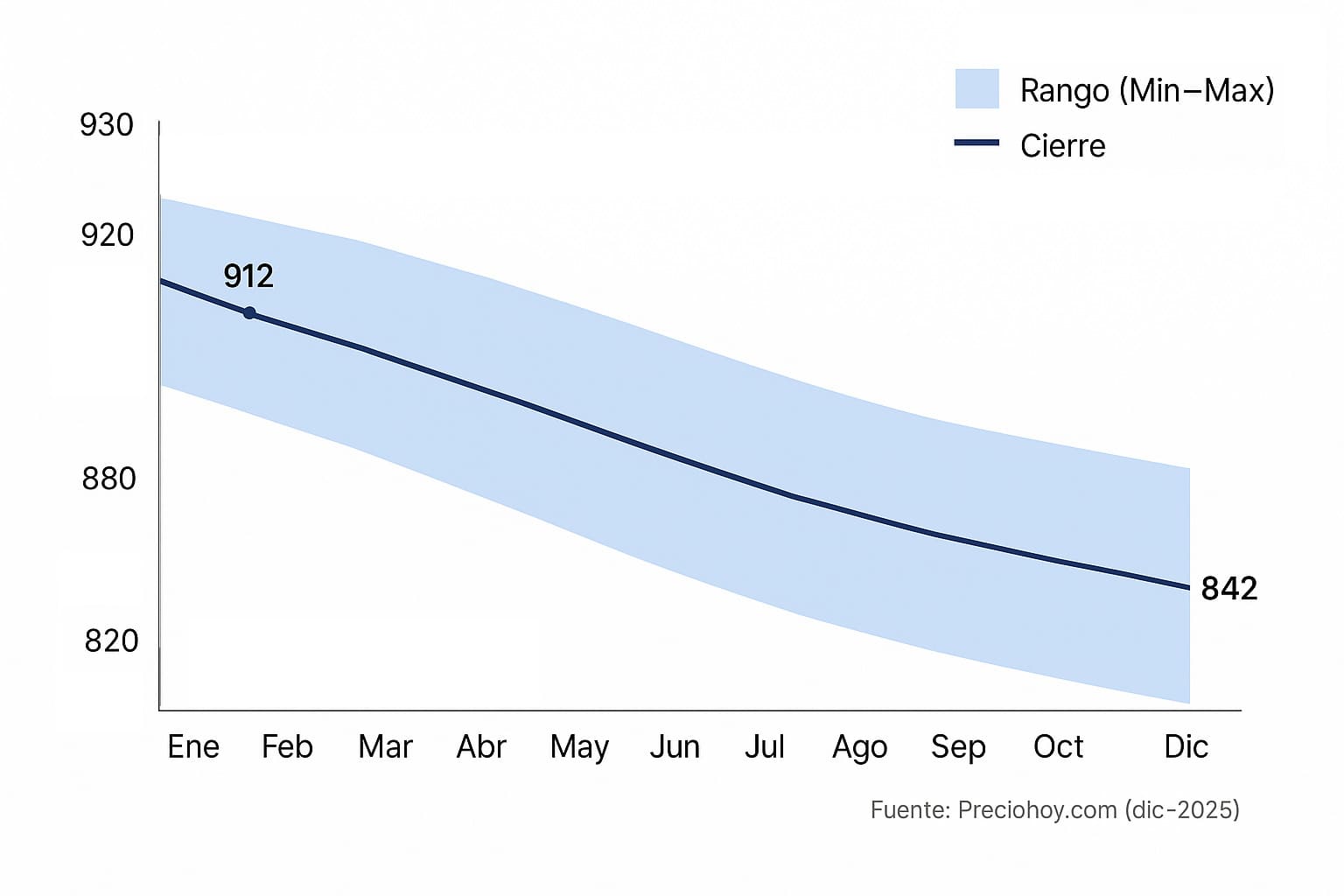 Al 11 de diciembre de 2025, 1 USD = 917,43 CLP. Para 2026, proyectamos valor promedio 935-960 CLP, dependiendo de cobre, Fed y política local. Rango diario probablemente 920-970 CLP.