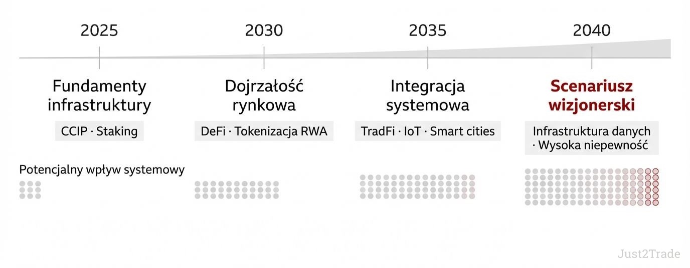Długoterminowa wartość Chainlink zależy ostatecznie od tego, czy sieci oracle staną się tak fundamentalne dla globalnej gospodarki cyfrowej, jak obecnie są protokoły internetowe. To wizja ambitna, ale nie niemożliwa – wymaga jednak połączenia innowacji technologicznych, adopcji rynkowej i korzystnych warunków makroekonomicznych utrzymujących się przez dekady.