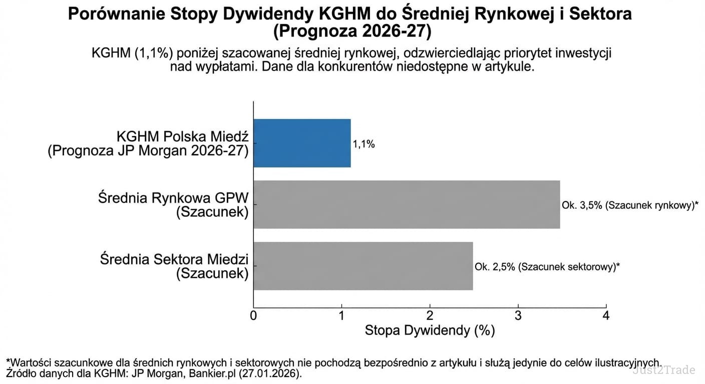 JP Morgan prognozuje stopę dywidendy na poziomie 1,1% dla lat 2026–27.