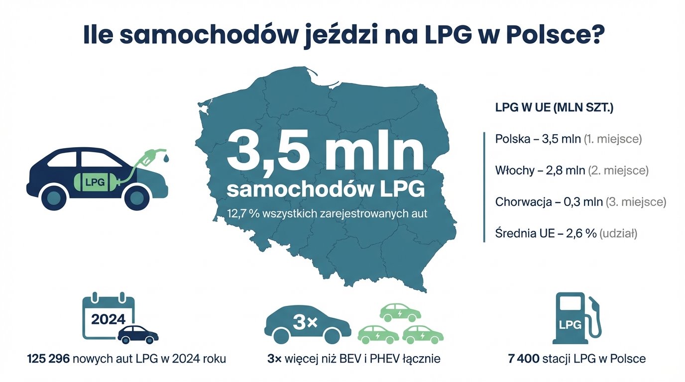 LPG pozostaje najbardziej ekonomicznym paliwem dla samochodów osobowych. Różnica między ceną LPG a benzyny wynosi obecnie 2,92 zł/l, co przekłada się na oszczędności 50-55% na kosztach paliwa.