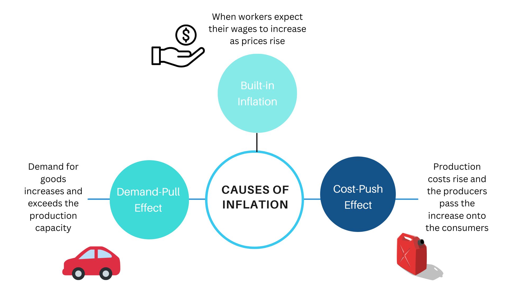 Banki centralne i władze monetarne kontrolują inflację przede wszystkim poprzez zarządzanie podażą pieniądza i politykę stóp procentowych. Polityka fiskalna rządu, wstrząsy zewnętrzne, takie jak klęski żywiołowe, i nierównowaga podaży i popytu również znacząco się przyczyniają.