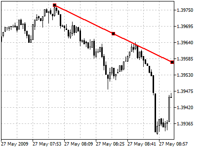 - Графический анализ. На графике можно построить линии тренда – это наклонные прямые, соединяющие точки минимума или максимума. Пока график находится ниже или выше этой линии, тренд продолжается, а пересечение будет сигнализировать о возможном развороте.