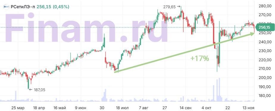 С момента публикации нашей идеи по привилегированным акциям «Россети Ленэнерго» от 16 июля, доходность составила 17%. Поддержку котировкам оказали опережающая инфляцию индексация тарифов в отрасли, привлекательная дивидендная политика компании, устойчивые финансовые результаты за первое полугодие и сильная чистая денежная позиция. Сдерживающим фактором выступает рост капитальных затрат. Кроме того, несмотря на заявления Минэнерго о возможных ограничениях на дивиденды, акции компании остаются одними из немногих бумаг сектора, которые пока ещё демонстрируют относительно привлекательный дивидендный потенциал: по итогам года дивиденды могут составить 30,80 руб. с доходностью 12%. Мы сохраняем рейтинг «Покупать» с апсайдом 12,1% при целевой цене 286,8 руб.