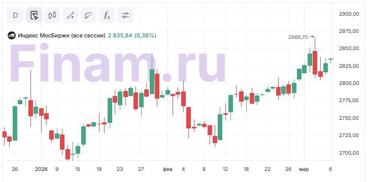 К концу недели российский рынок приходит хоть и в нервозном состоянии, но все же в приподнятом настроении. На утренних торгах индекс МосБиржи растет на 0,4% до 2835,64 пункта. Как поясняет директор по стратегии ИК «Финам» Ярослав Кабаков, для российского рынка ситуация складывается парадоксально: глобальный риск давит на акции, но дорогая нефть поддерживает нефтегазовый сектор и удерживает индекс МосБиржи около локальных максимумов. «Главным драйвером остаётся конфликт вокруг Ирана, который резко повысил премию за геополитический риск на сырьевых рынках. Нефть удерживается выше $84 за баррель, золото растёт до $5134, а инвесторы по всему миру уходят в защитные активы», - комментирует г-н Кабаков.