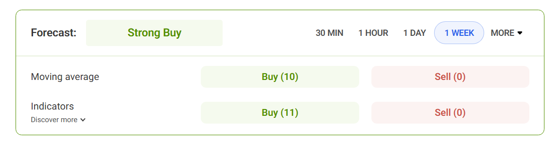 - Technical Indicators: On the 1-hour chart, trading indicators suggest a Sell signal; on the daily (1D) timeframe, the signal is Neutral, while the weekly (W1) timeframe indicates a Buy.
