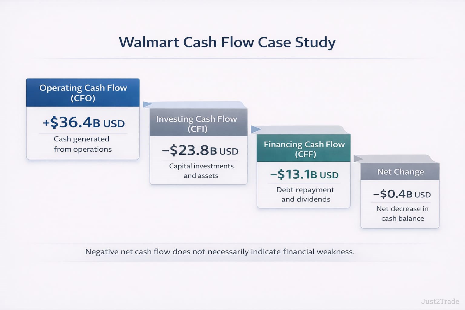 Looking at Walmart's actual financial statements clearly illustrates these concepts in practical action. For fiscal year 2025, Walmart reported the following cash flow performance: