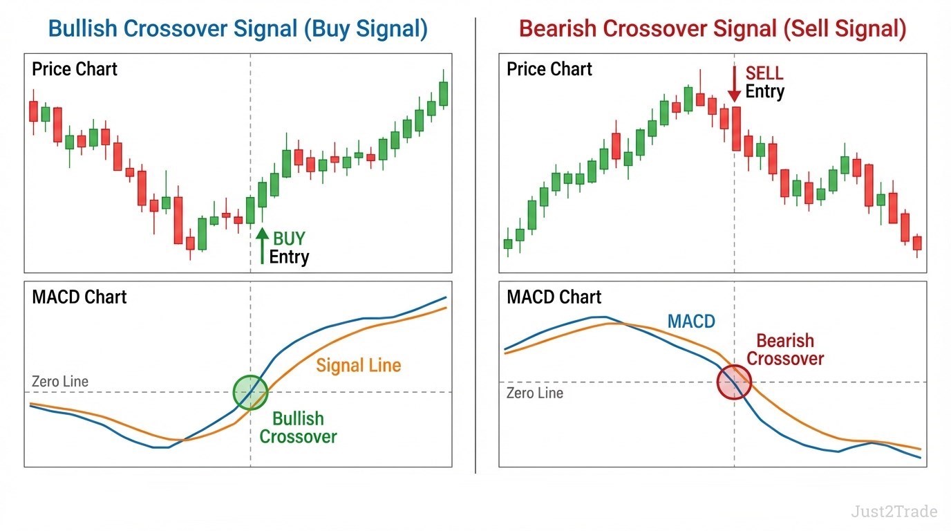 - Market context → Trade only when broader trend aligns with MACD signal direction