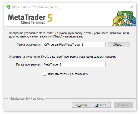 приклад ми будемо розглядати установку MetaTrader 5 під Windows. Процес